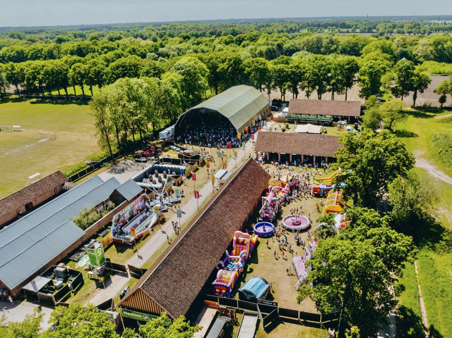 Dankzij de ruime opstelling van de Open Schuren is er plaats voor grote podia, gezellige zones en comfortabele festivalfaciliteiten. De combinatie van erfgoed, natuur en moderne festivalinrichting zorgt voor een unieke sfeer die je nergens anders vindt.